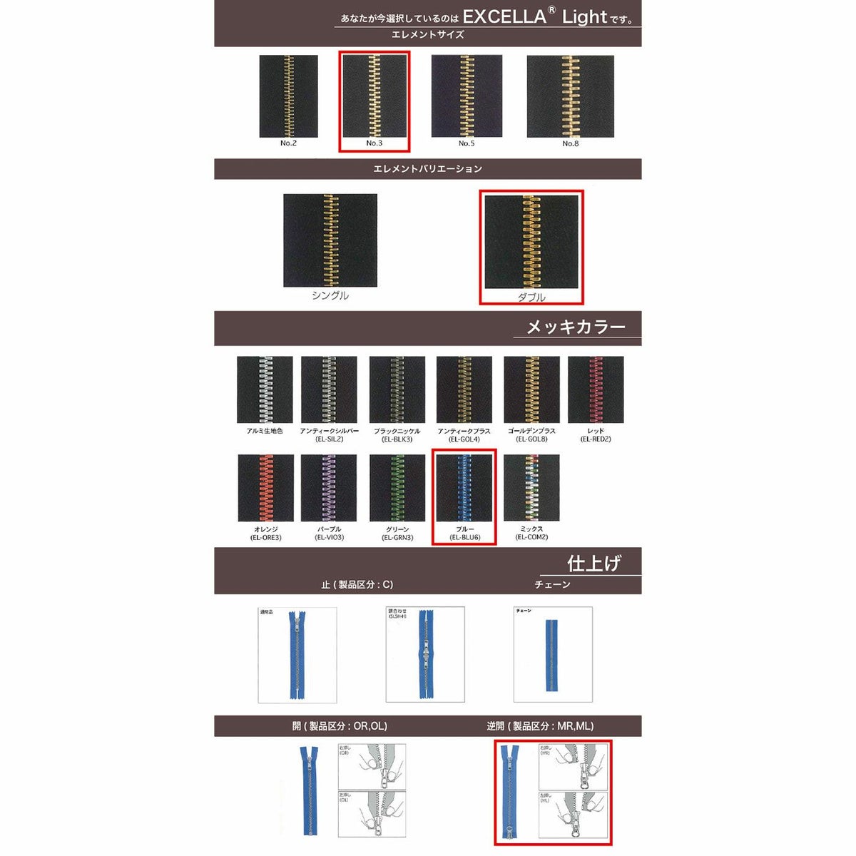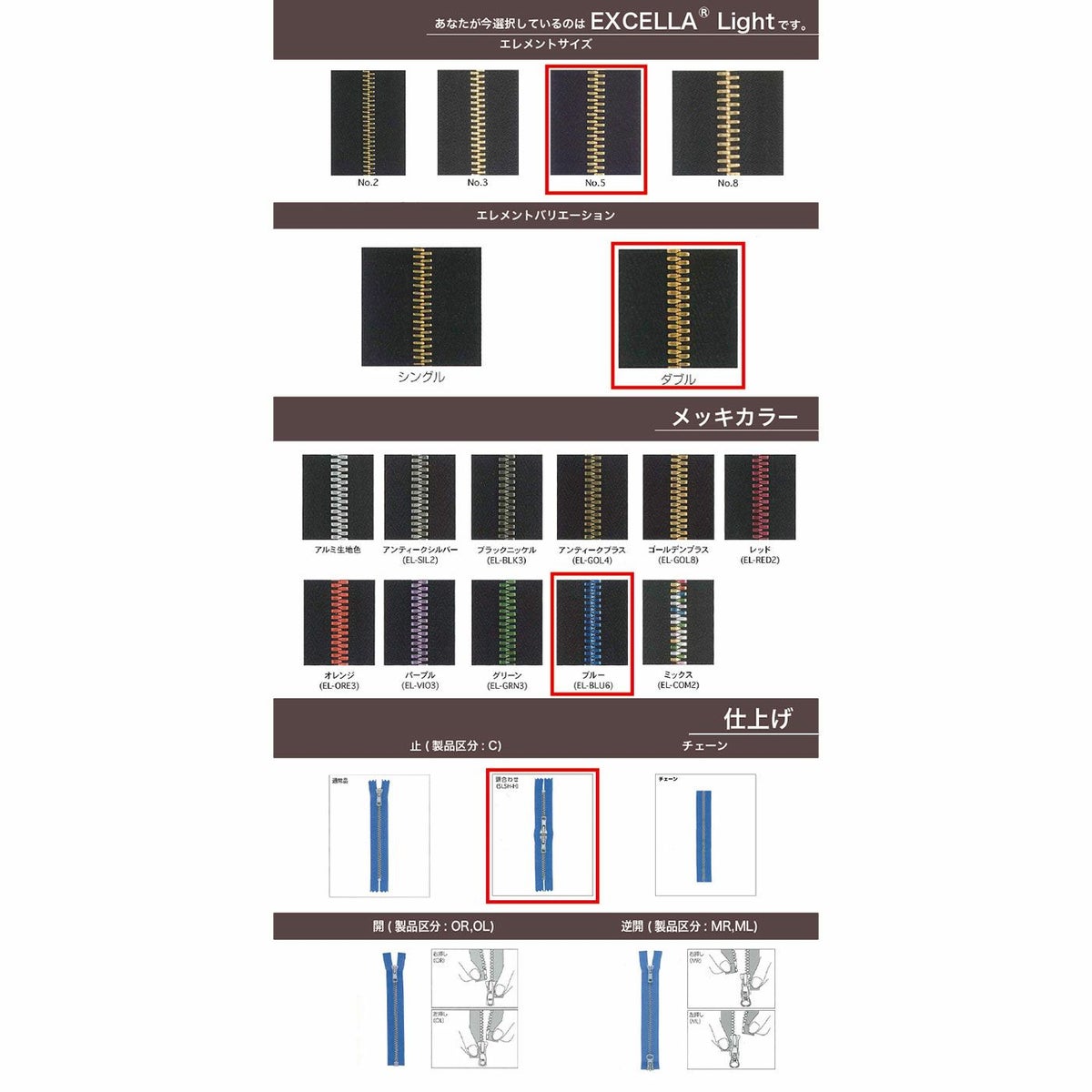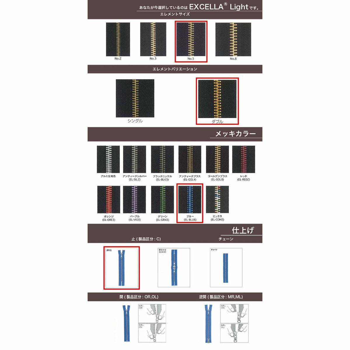 他の画像を見る 【取寄】【OPダブル・逆開】【EXCELLA Light】 5SAWA EL-BLU6 MR DA2E / DAG2E-EMC ブルー YKK取り寄せ品 鞄・財布 衣料品 40cm仕上げの場合 ¥ 1,041 税込 会員価格あり 詳細を見る お気に入りに登録する