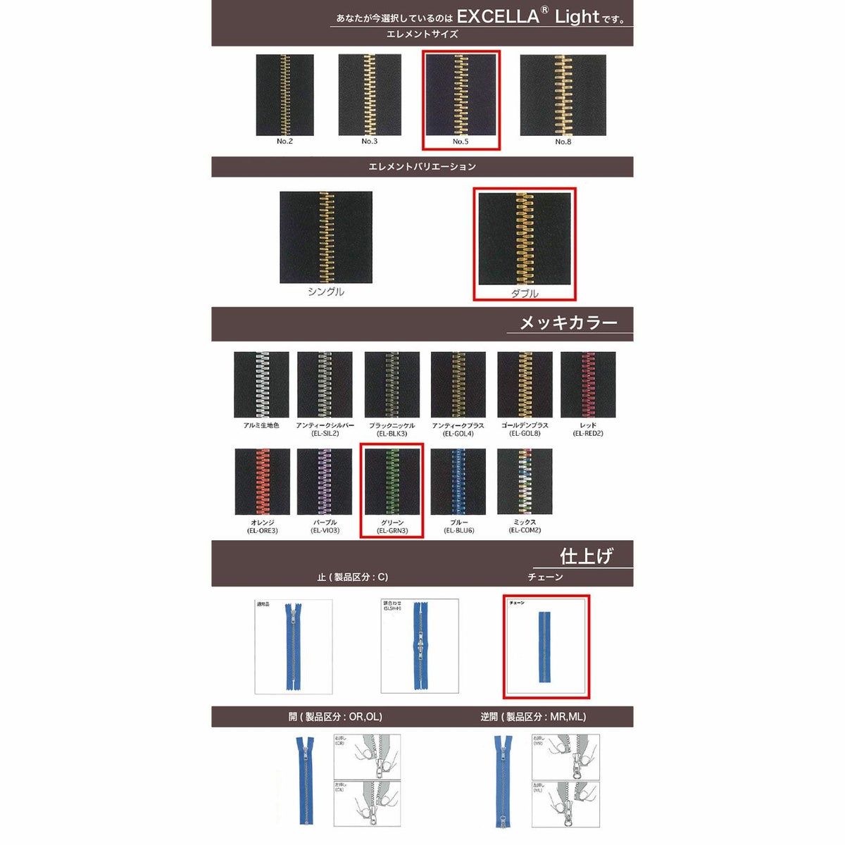 他の画像を見る 【取寄】【OPダブル・逆開】【EXCELLA Light】 5SAWA EL-GRN3 MR DA2E / DAG2E-EMC グリーン YKK取り寄せ品 鞄・財布 衣料品 40cm仕上げの場合 ¥ 1,041 税込 会員価格あり 詳細を見る お気に入りに登録する