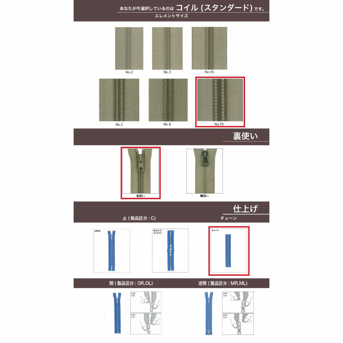 エレメントがコイル状になっている樹脂ファスナーです。様々な用途でご使用できるスタンダードなファスナーです。