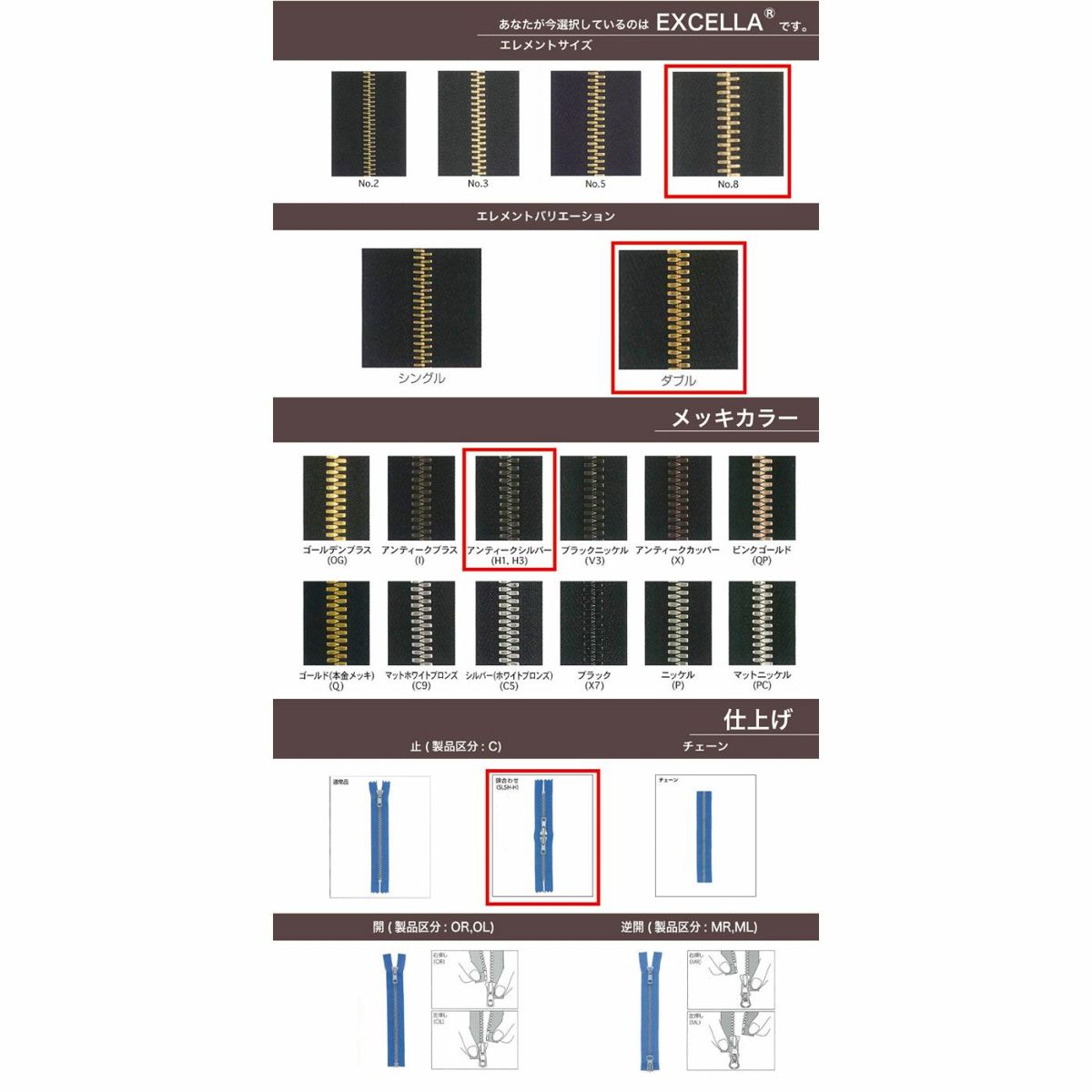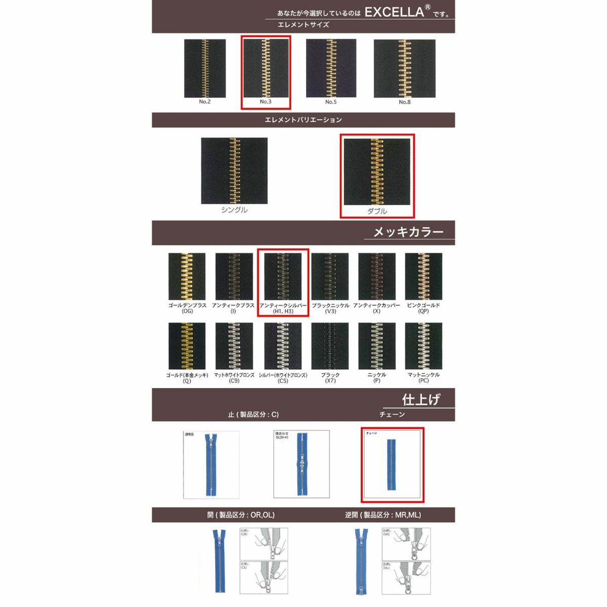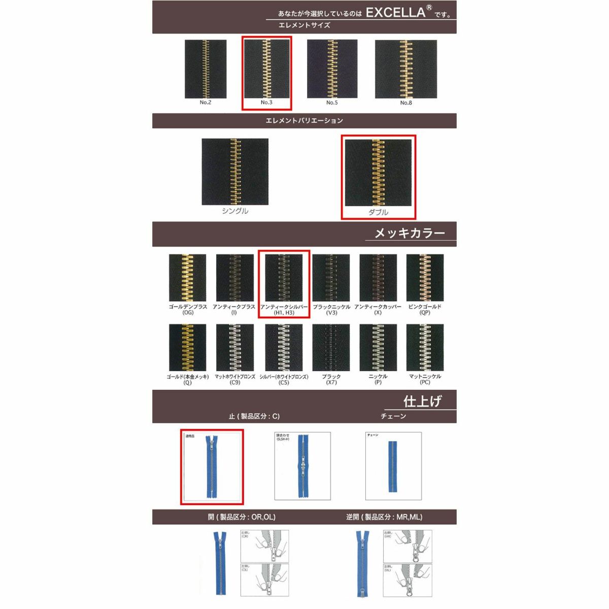 他の画像を見る 【取寄】【OPダブル・逆開】【ダブルチェーン】【EXCELLA】 8SGWH3 MR DA1 / DA1-H3 アンティークシルバー YKK取り寄せ品 鞄・財布 衣料品 25cm仕上げの場合 ¥ 1,391 税込 会員価格あり 詳細を見る お気に入りに登録する