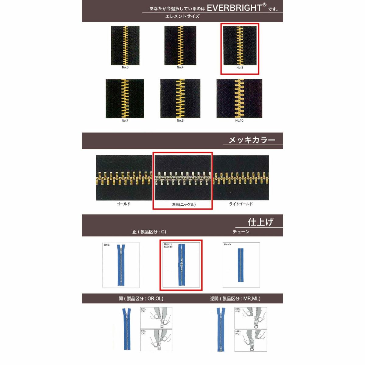 他の画像を見る 【取寄】【止ダブル】【EVERBRIGHT】 5RNMP C DFW / DFW-N ニッケル YKK取り寄せ品 鞄・財布 衣料品 20cm仕上げの場合 ¥ 173 税込 会員価格あり 詳細を見る お気に入りに登録する