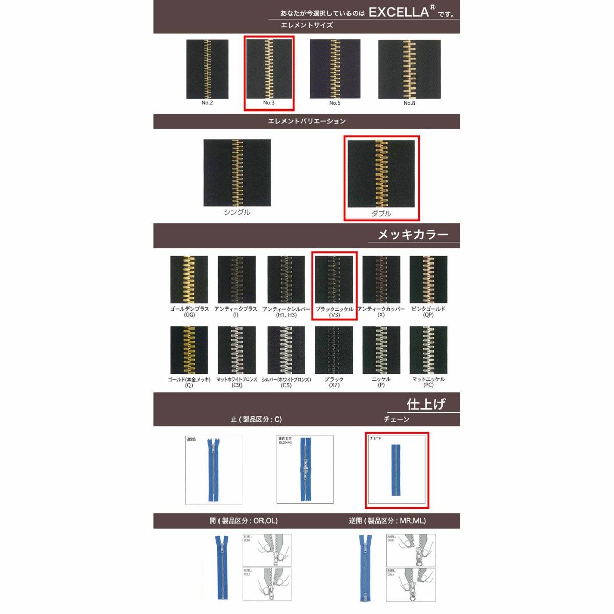他の画像を見る 【短納期】【止シングル】【ダブルチェーン】【EXCELLA】 3SGWV3 C DFW-V3 ブラックニッケル 短納期 鞄・財布 衣料品 10cm仕上げの場合 ¥ 413 税込 会員価格あり 詳細を見る お気に入りに登録する