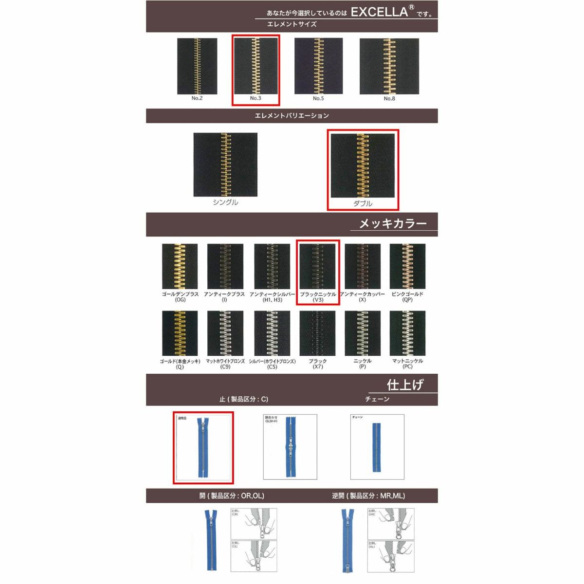 他の画像を見る 【取寄】【止シングル】【ダブルチェーン】【EXCELLA】 3SGWV3 C DFW-V3 ブラックニッケル YKK取り寄せ品 鞄・財布 衣料品 10cm仕上げの場合 ¥ 248 税込 会員価格あり 詳細を見る お気に入りに登録する