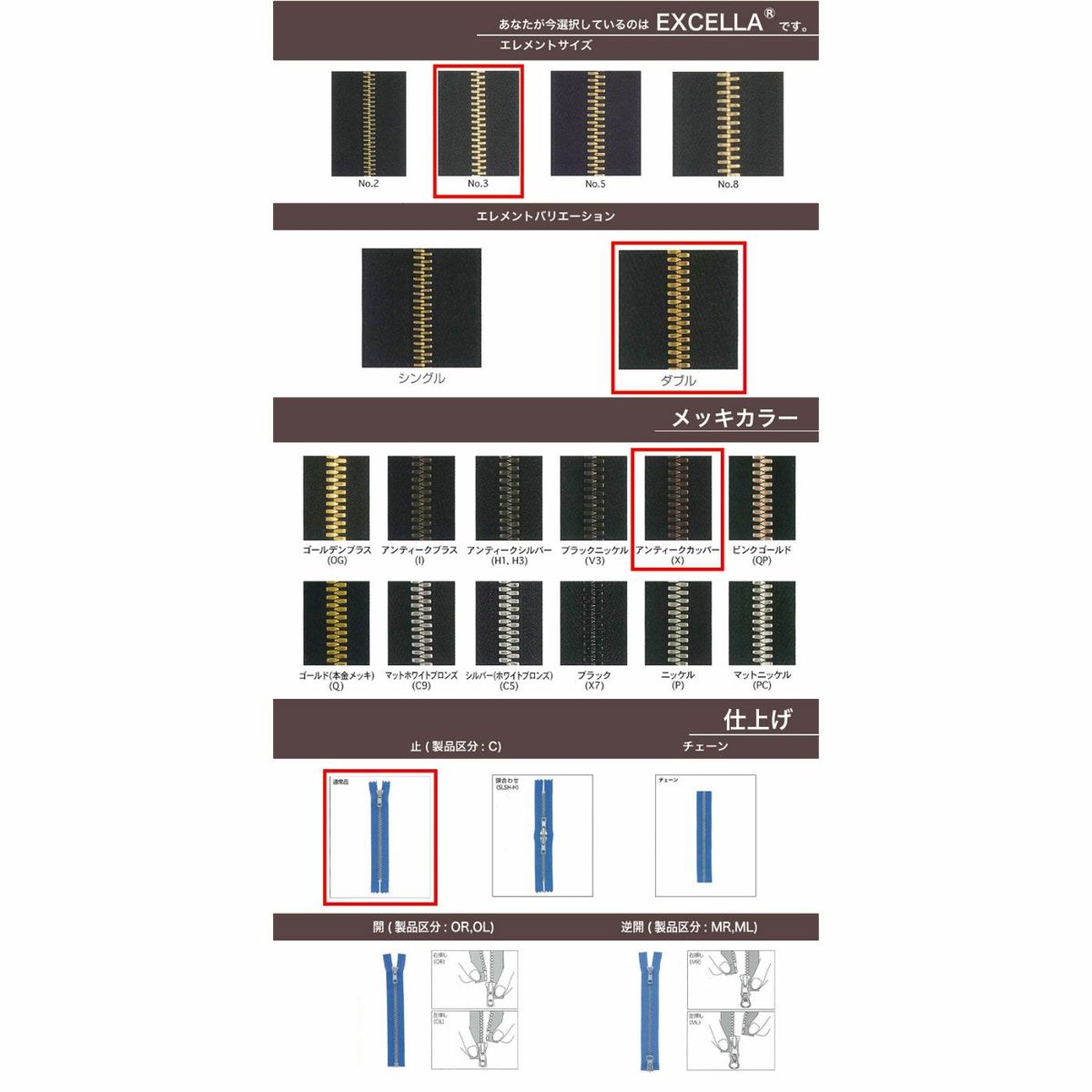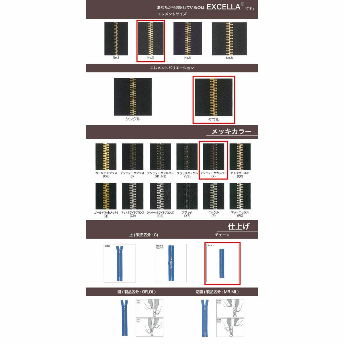 他の画像を見る 【取寄】【止シングル】【ダブルチェーン】【EXCELLA】 3SGWX C DFW-X アンティークカッパー YKK取り寄せ品 鞄・財布 衣料品 10cm仕上げの場合 ¥ 253 税込 会員価格あり 詳細を見る お気に入りに登録する