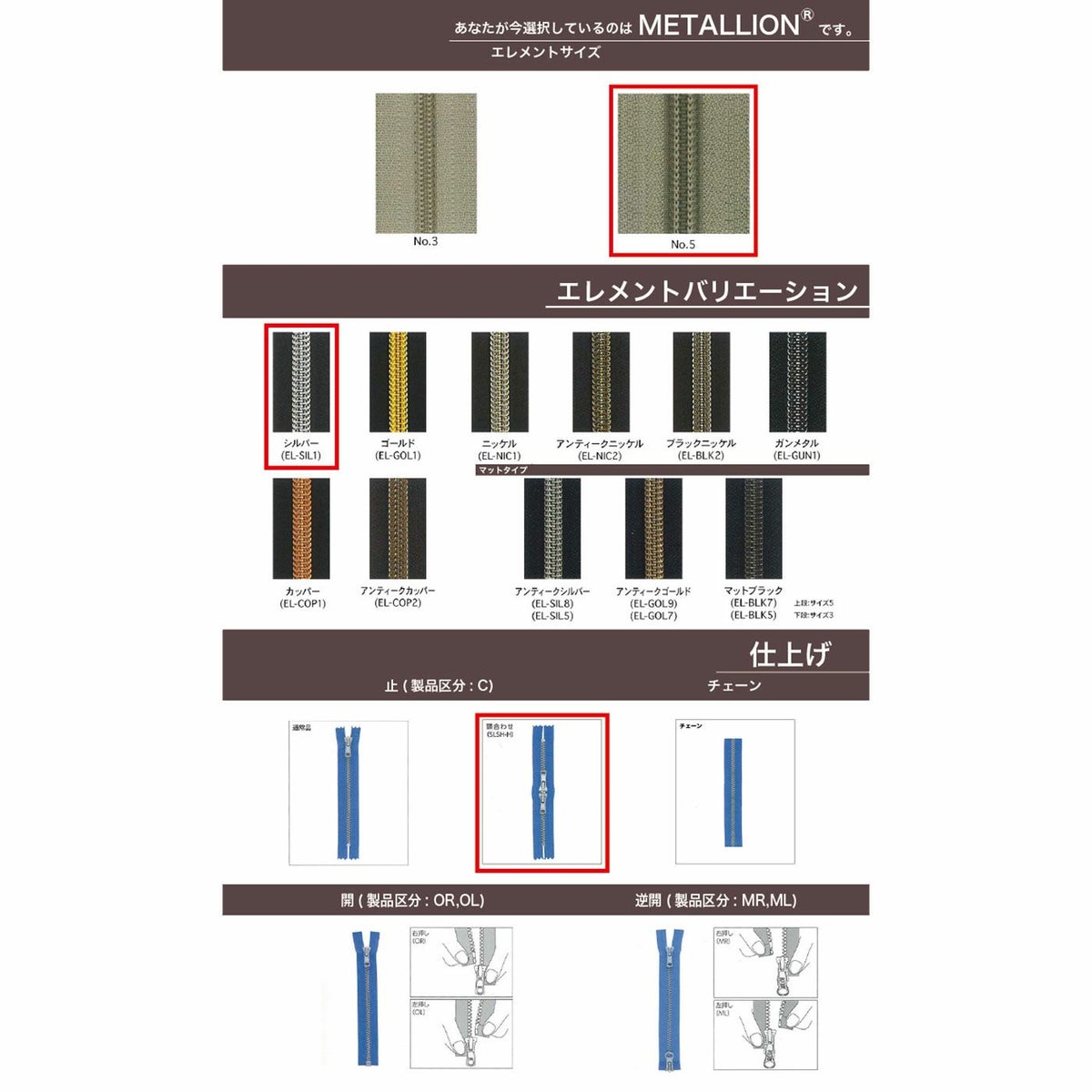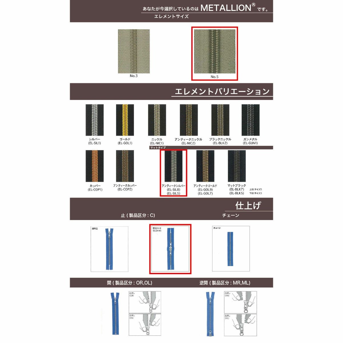 他の画像を見る 【取寄】【止ダブル】【Metallic Coil Zipper】 5CNV EL-SIL5 C DFW / DFW-H3 アンティークシルバー YKK取り寄せ品 鞄・財布 衣料品 12cm仕上げの場合 ¥ 179 税込 会員価格あり 詳細を見る お気に入りに登録する