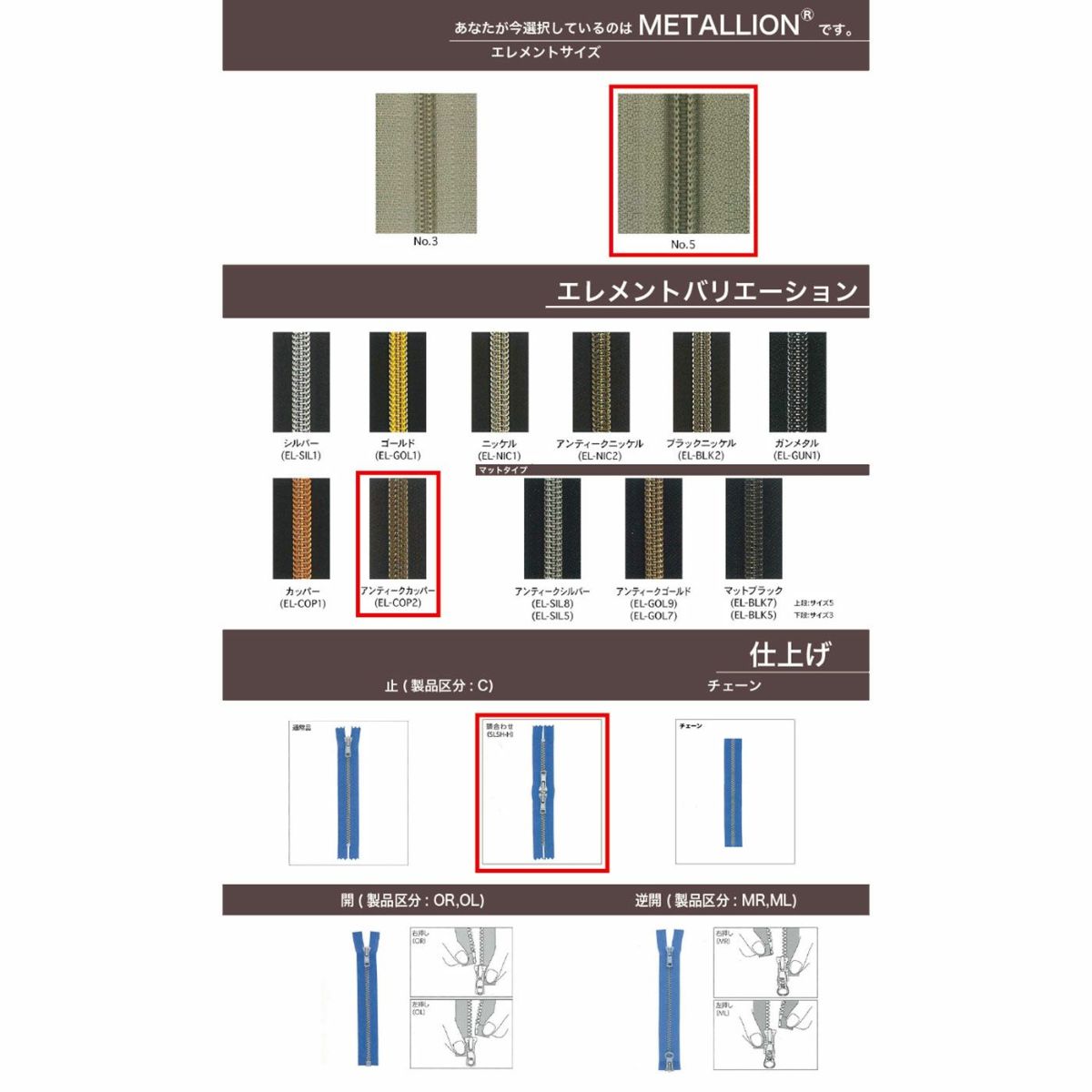 他の画像を見る 【取寄】【止ダブル】【Metallic Coil Zipper】 5CNM EL-S-COP5A C DFW / DFW-X アンティークカッパー YKK取り寄せ品 鞄・財布 衣料品 12cm仕上げの場合 ¥ 195 税込 会員価格あり 詳細を見る お気に入りに登録する