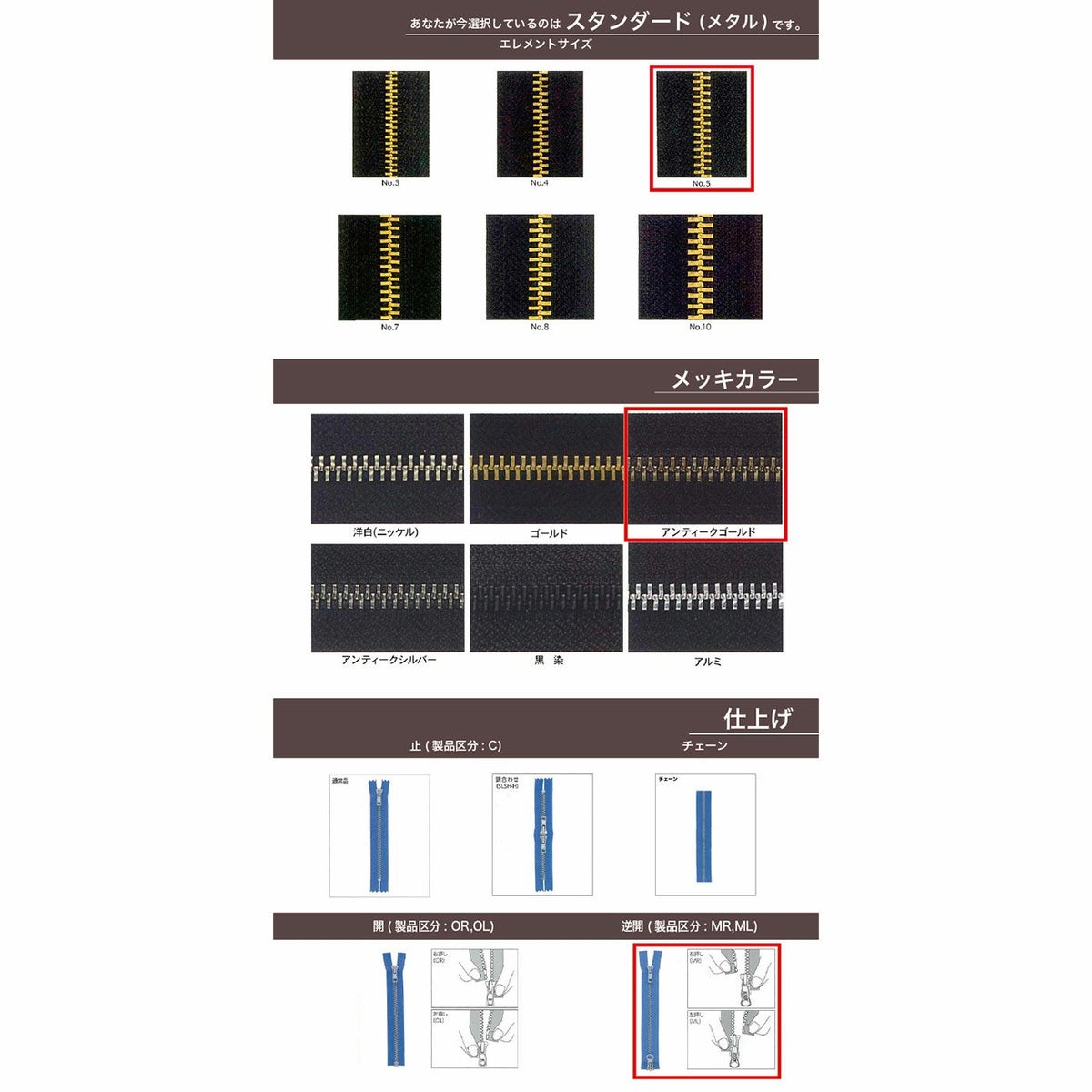 他の画像を見る 【取寄】【OPダブル・逆開】【ダブルチェーン】【EXCELLA】 5SGW2X MR DA2E / DAG2E-X アンティークカッパー YKK取り寄せ品 鞄・財布 衣料品 20cm仕上げの場合 ¥ 806 税込 会員価格あり 詳細を見る お気に入りに登録する