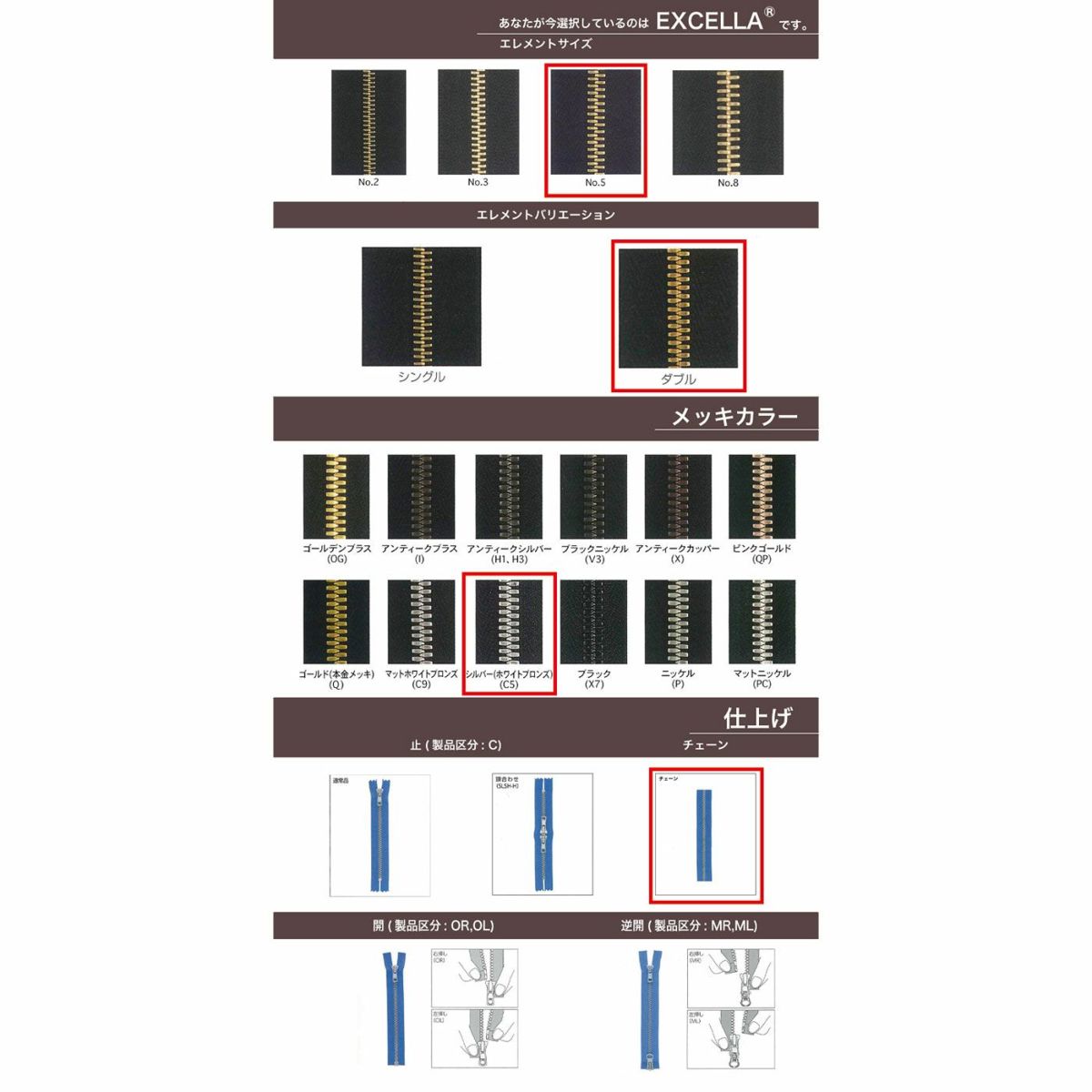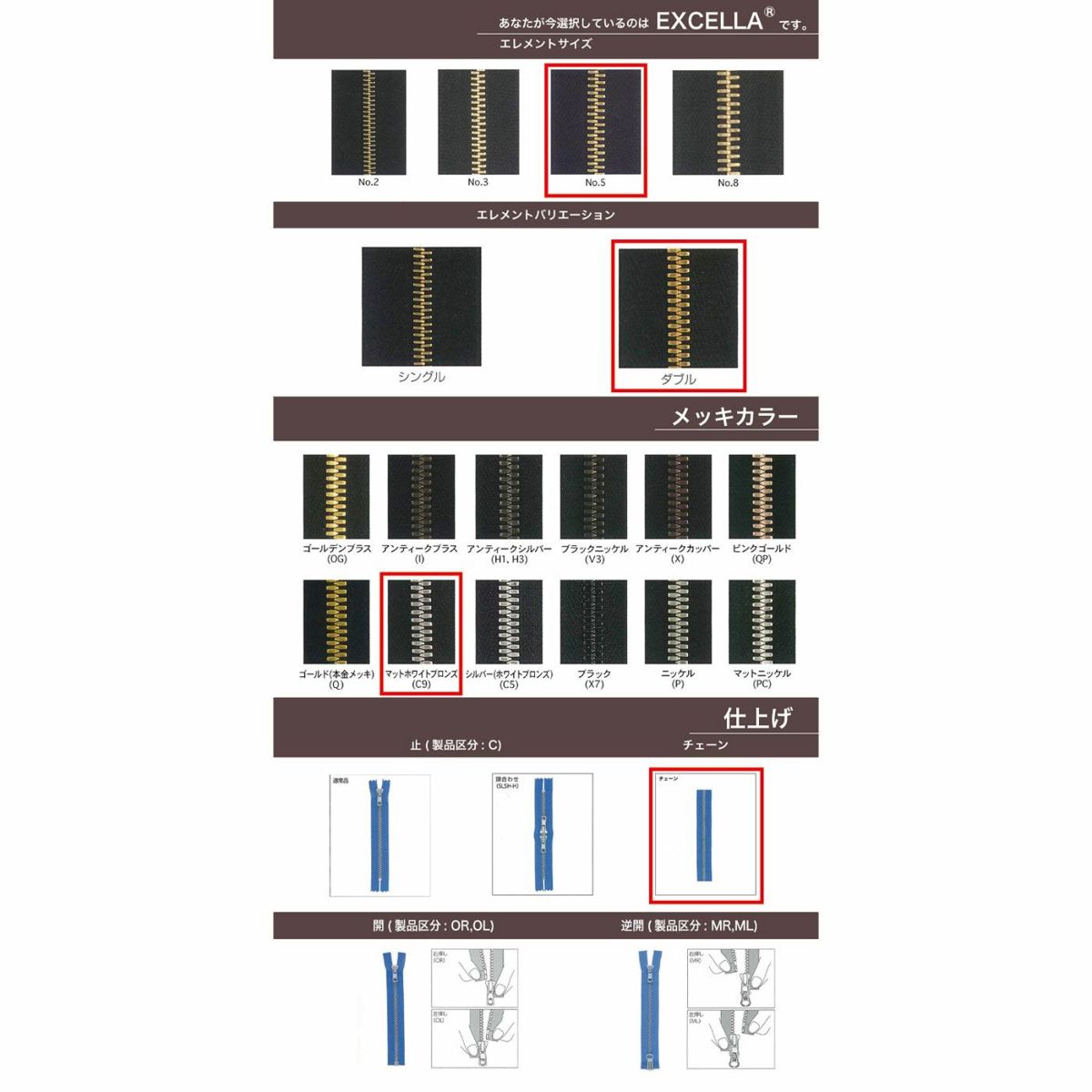 他の画像を見る 卸会員限定商品 【取寄】【OPダブル・逆開】【ダブルチェーン】【EXCELLA】 5SGW2C9 MR DA2E / DAG2E-C2 マットホワイトブロンズ YKK取り寄せ品 鞄・財布 衣料品 20cm仕上げの場合 ¥ 1,126 税込 会員価格あり 在庫切れ 専用PW入力後、卸価格になります。 詳細を見る お気に入りに登録する