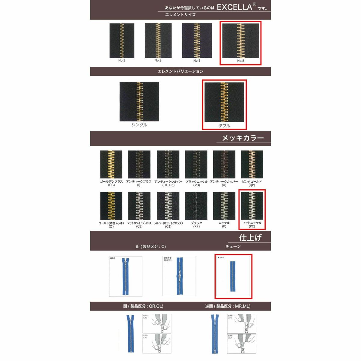 他の画像を見る 卸会員限定商品 【取寄】【OPダブル・逆開】【ダブルチェーン】【EXCELLA】 8SGWPC MR DA1 / DA1-PC2 マットニッケル YKK取り寄せ品 鞄・財布 衣料品 25cm仕上げの場合 ¥ 1,405 税込 会員価格あり 在庫切れ 専用PW入力後、卸価格になります。 詳細を見る お気に入りに登録する