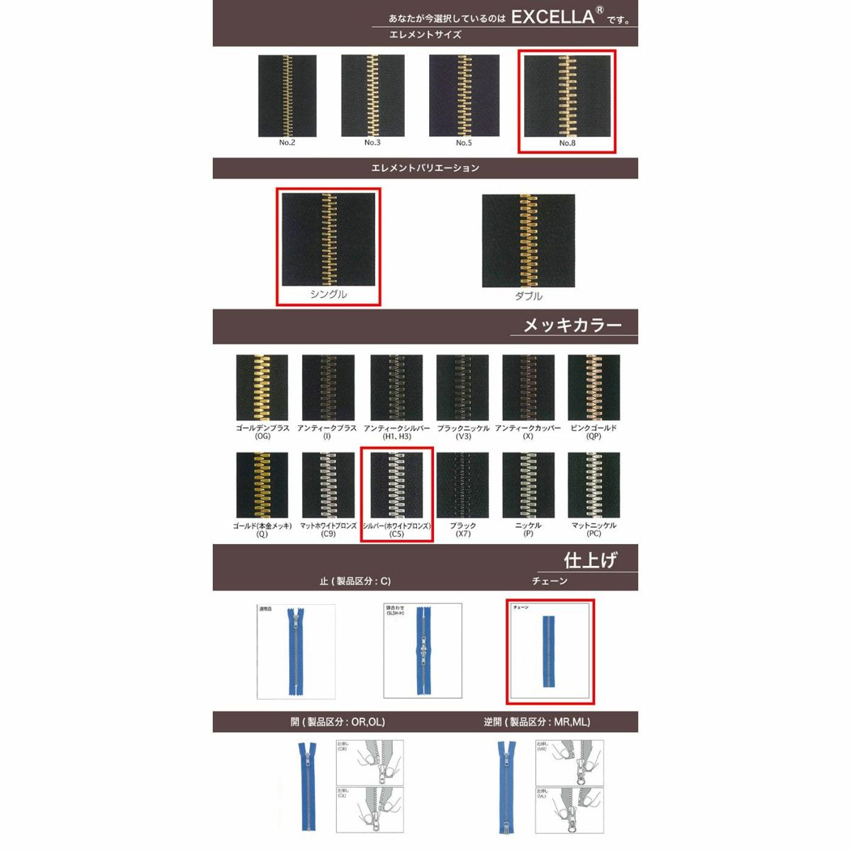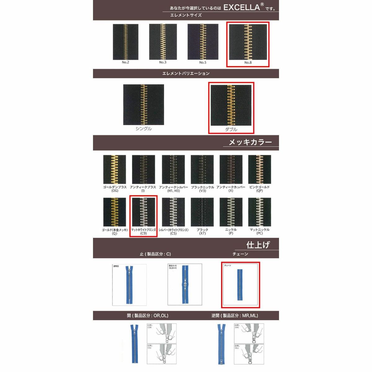 他の画像を見る 【短納期】【OPダブル・逆開】【ダブルチェーン】【EXCELLA】 5SGW2X1 MR DA2E / DAG2E-X6J ブラック 104cm 短納期 鞄・財布 衣料品 104cm仕上げの場合 ¥ 3,190 税込 詳細を見る お気に入りに登録する